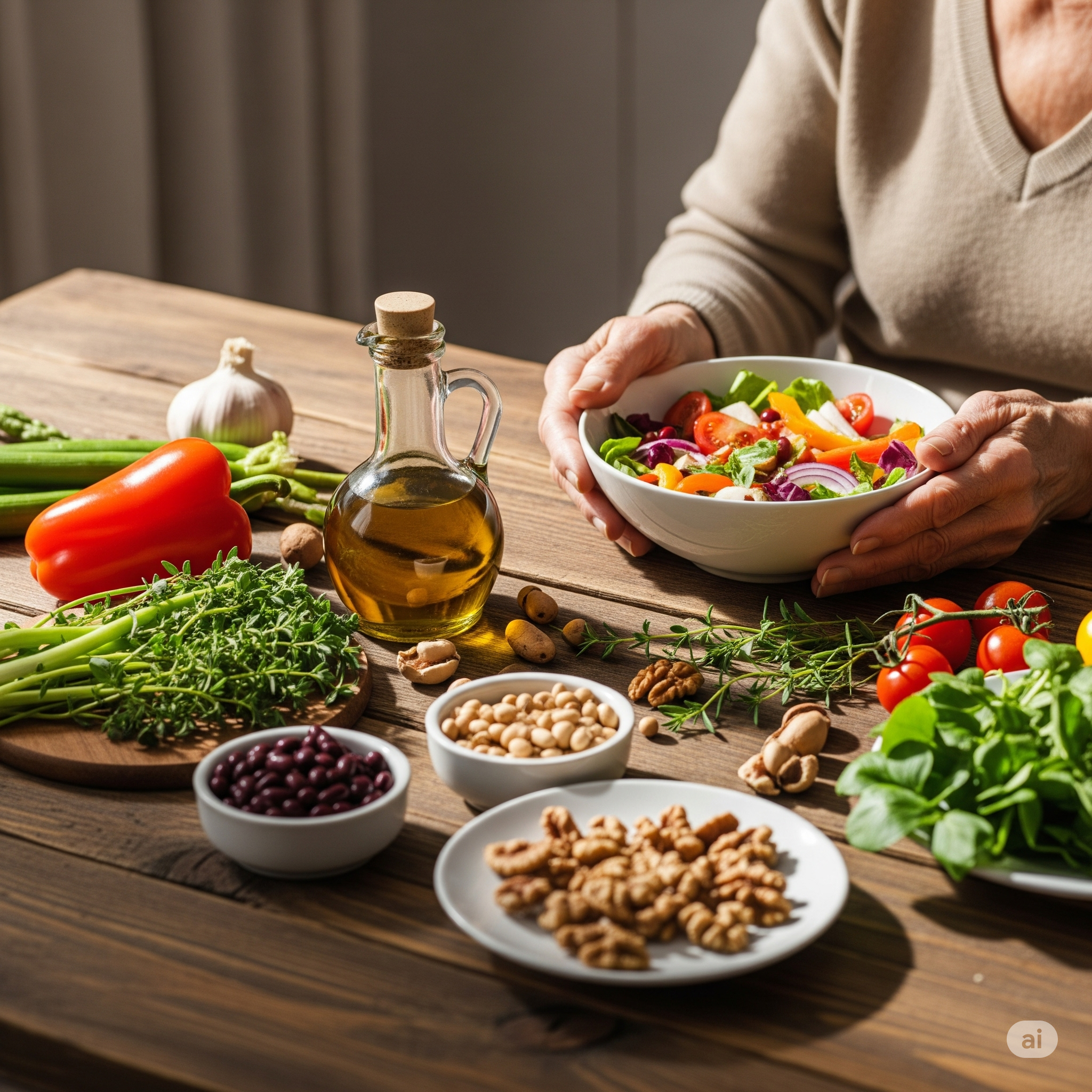 견과류도 빼놓을 수 없는 요소입니다. 아몬드, 호두, 피스타치오 등을 정기적으로 섭취하며, 이는 심혈관 질환 예방과 뇌 건강에 도움이 됩니다. 하루 1온스(약 28g)의 견과류 섭취가 권장됩니다.