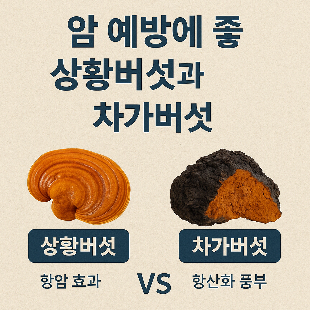 상황버섯은 베타글루칸 중심의 면역 활성에 중점을 둔 반면, 차가버섯은 항산화 효소 및 항염 성분 중심으로 작용합니다. 암 예방이라는 공통점은 있지만, 상황버섯은 암세포 억제와 면역 강화에, 차가버섯은 항산화와 전반적인 건강 증진에 중점을 둡니다.