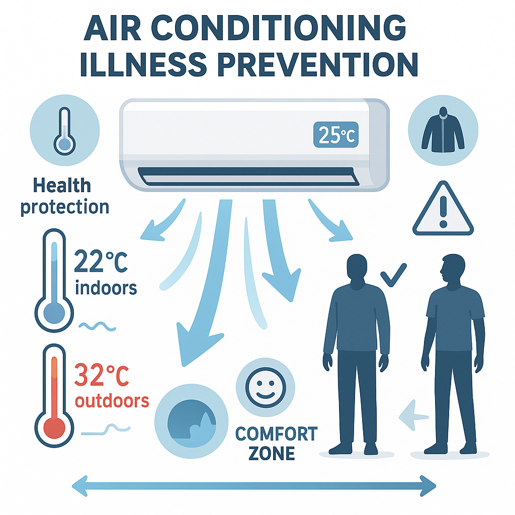 냉방병 예방은 평소의 생활 습관에서 시작됩니다. 규칙적인 운동과 충분한 수면, 균형 잡힌 영양 섭취가 기본이며, 냉방기 사용 시 몇 가지 수칙을 지키는 것이 중요합니다.