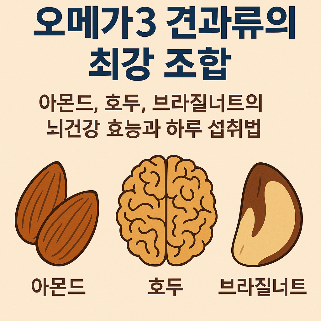 오메가3 견과류는 뇌 건강과 기억력 향상에 탁월한 자연의 보약입니다. 특히 아몬드, 호두, 브라질너트는 각각의 효능을 통해 시너지 효과를 발휘하죠. 오늘은 이 최강 견과류 조합의 효과와 하루 섭취법까지 자세히 알려드립니다.