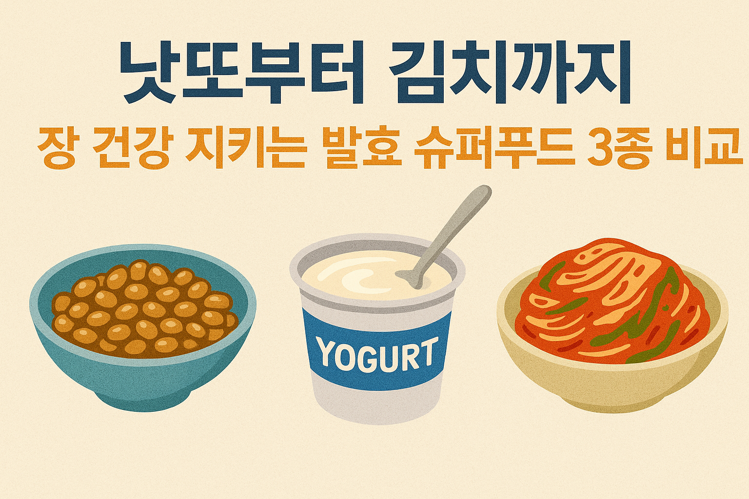 장 건강을 위해 어떤 발효 슈퍼푸드를 선택해야 할까요? 김치, 낫또, 요거트를 영양 성분과 효과 면에서 비교 분석해드립니다.