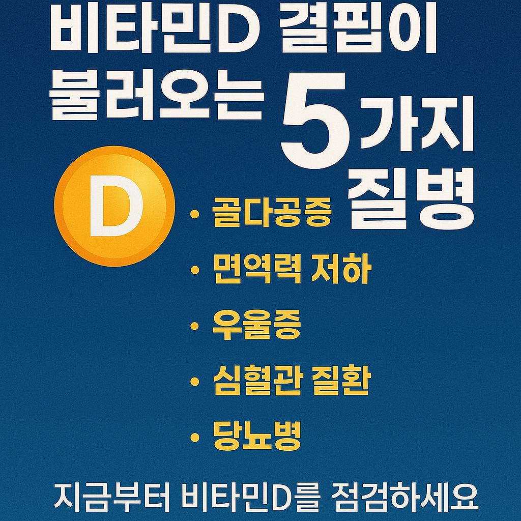 비타민D는 뼈 건강뿐 아니라 면역력과 전반적인 신체 기능에 깊은 영향을 미칩니다. 결핍 시 어떤 질병이 발생할 수 있을까요? 반드시 알아야 할 5가지 질병을 정리했습니다.